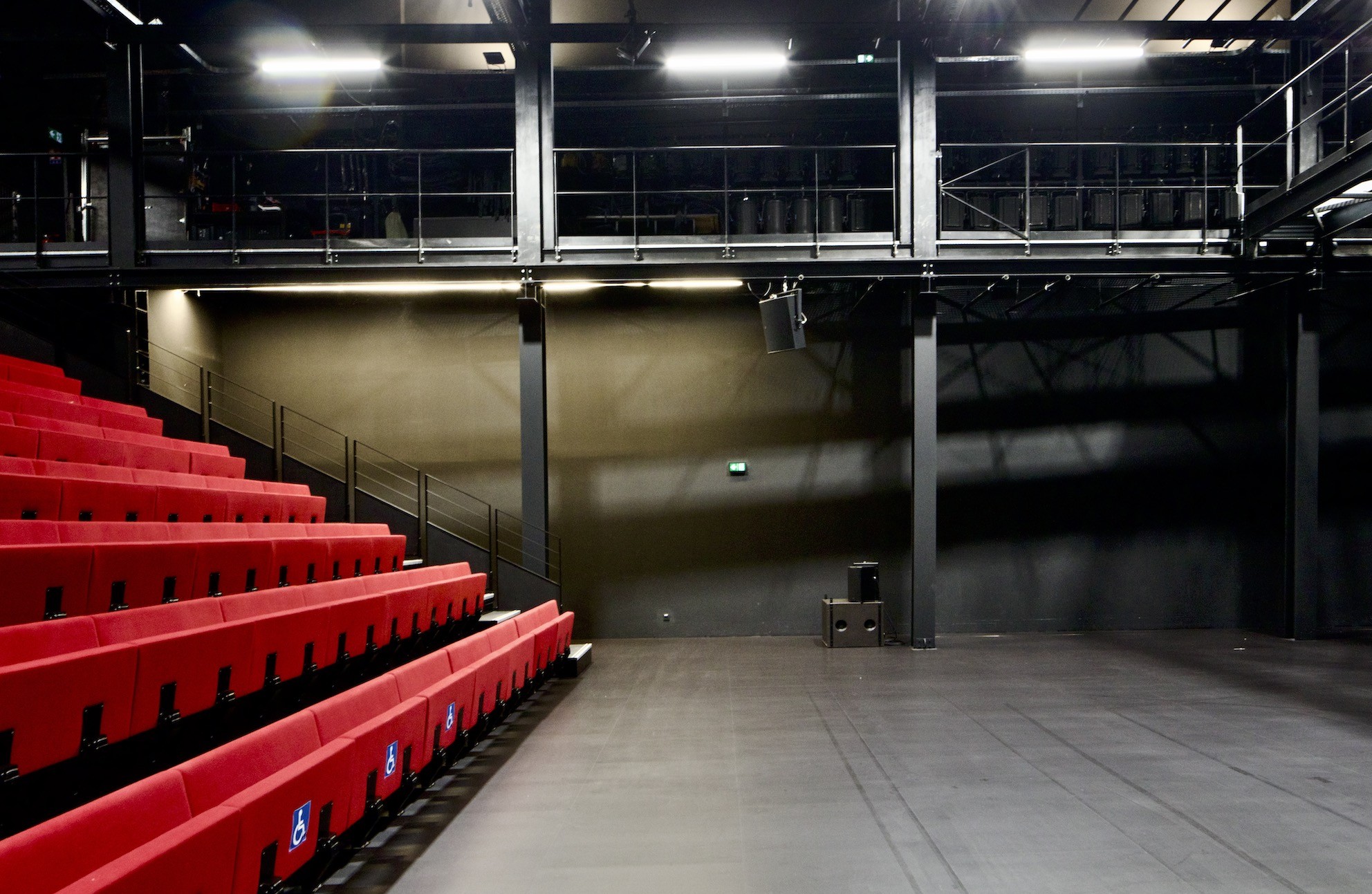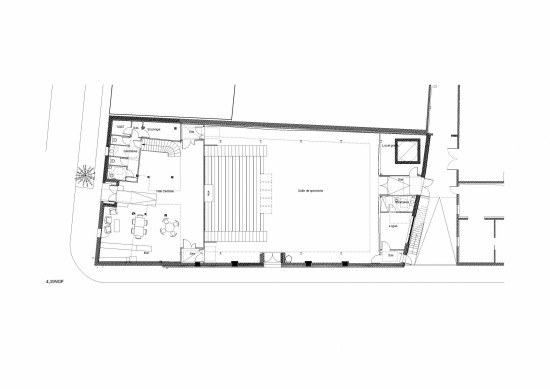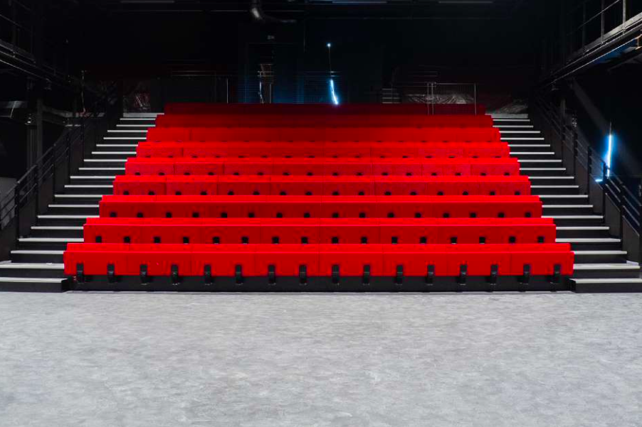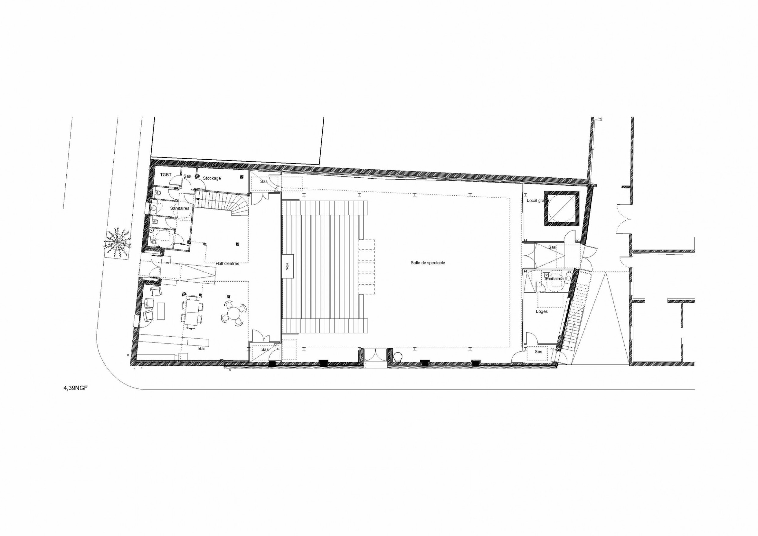Its transformation is an opportunity to make this building a design model responding to current challenges in terms of artistic production and performance, ecological issues, and impact on the community. It is designed to operate on a single floor, from inside the theater to the street. Removable bleachers allow for a doubling of the number of seats and great configuration flexibility. The theater’s forecourt has been completely redesigned with the street in cooperation with city authorities. This project’s ecology is based on the transformation of an existing building but relies above all on its team, skills, and audience. It is reflected in the choice of environmentally friendly materials as well as in the use of low-energy, efficient technical equipment.