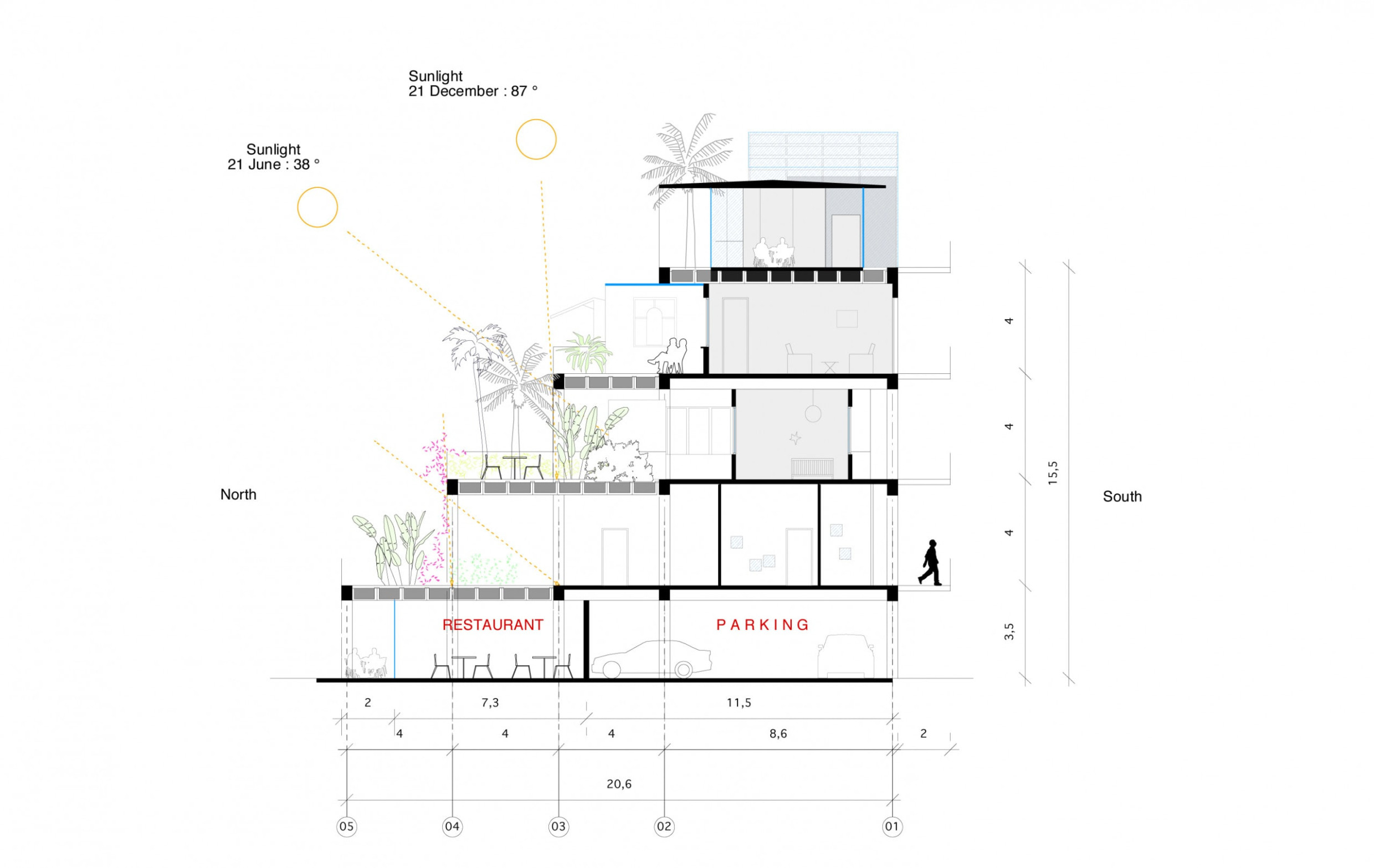 The cities of Johannesburg and Soweto are experiencing unprecedented urban sprawl. Today, a model suited to the South African economic and social context needs to be developed in place of the suburban model. The project consists of a cost-effective and rational concrete structure adapted to climate and context. Long, narrow strips of housing on the west and north sides create a large communal garden in the center of the plot. The five-story high-ceilinged concrete structures are composed of “buildable” plots of 127 to 450 m2 (1,367 to 4,844 sq. ft) with the possibility of creating gardens of 25 to 317 m2 (1,367 to 3,412 sq. ft) each. The aim of this project is initially to deliver empty plots to each family, free to build their own home with the developer of their choice.