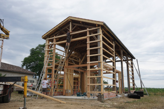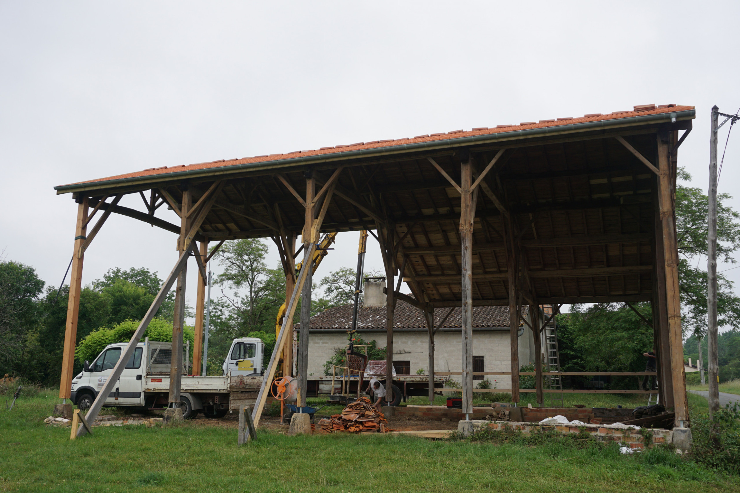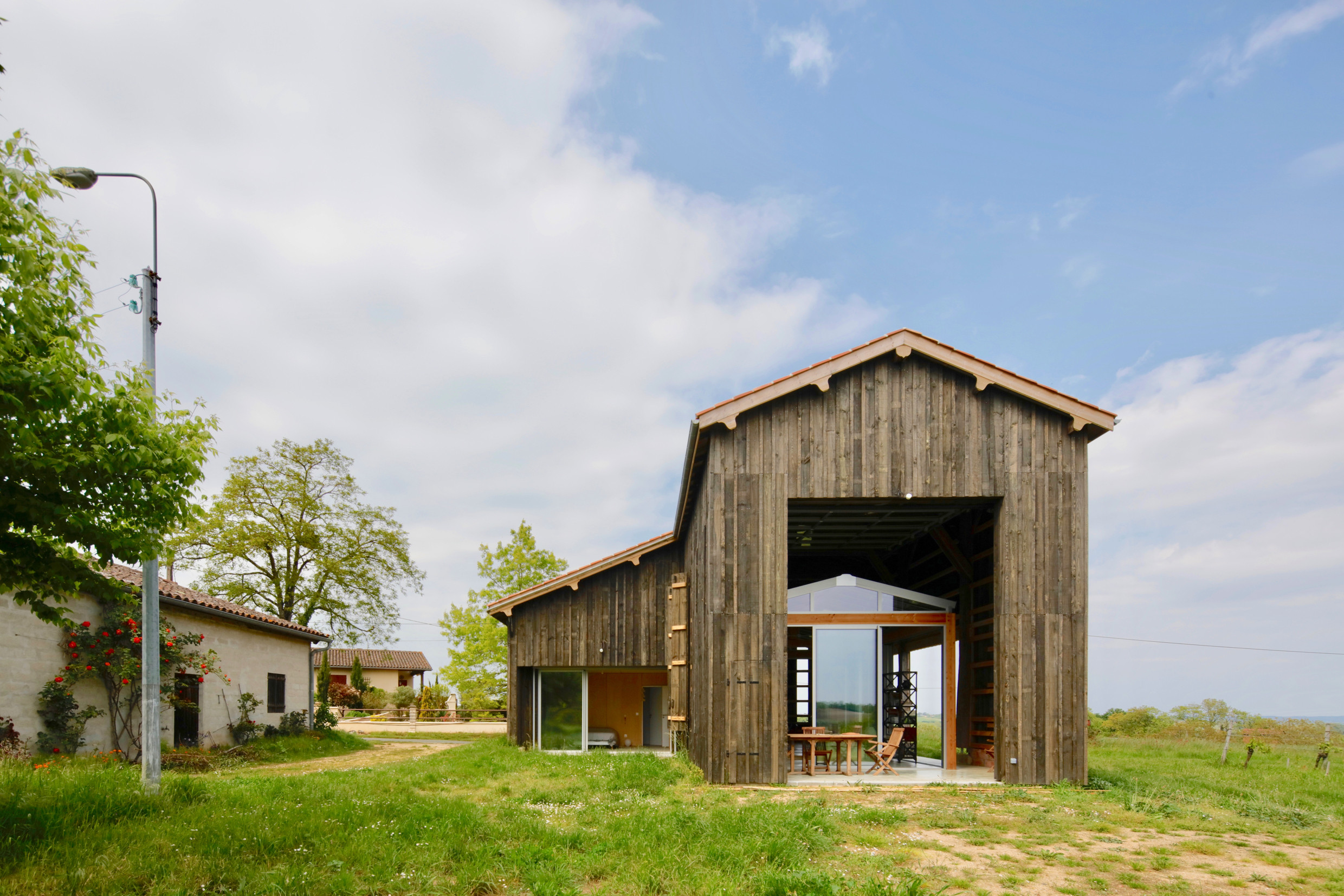 Transformation of an old tobacco drying shed located in the heart of the Lot-et-Garonne vineyards. The client wished to turn it into a house and be able to cook facing the landscape.