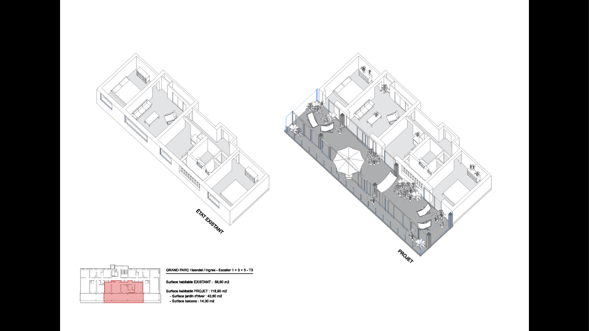 This project for “social” housing, an often-disparaged heritage, shows how a relevant, cost-effective transformation produces generous, comfortable, energy-efficient housing from belittled and negatively perceived buildings. It can renew types and conditions of living, comfort, and pleasure, and raise the profile of today’s urban housing.