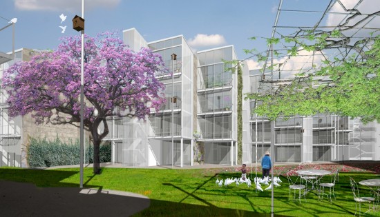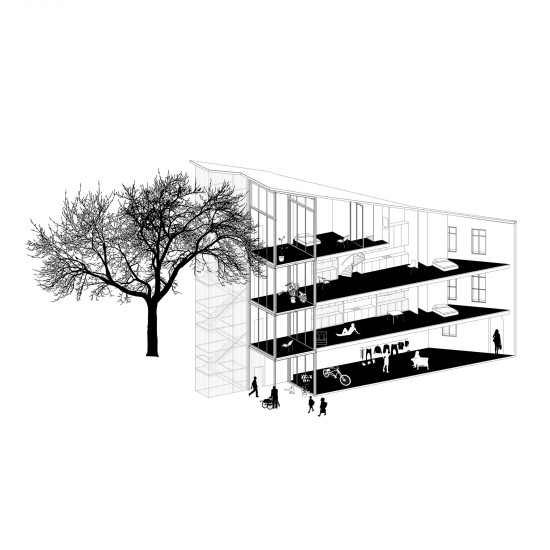 Examine the architecture of a block in the historic city center of Bordeaux and propose a transformation strategy free of nostalgia and concessions to the picturesque. Our proposal: create a large garden (3,500 m² / 37,674 sq. ft) in the center of the block. A community asset for all inhabitants, undefined by a precise plan but composed of simple elements: a large central tree, birdhouses placed around the dwellings, and a large, planted trellis around the ground floor programs. Vertical circulations (elevators) are moved outside to make all dwellings accessible. Inside the block, fully glazed conservatories replace the formerly closed facades. Depending on the season, they offer thermal modulation to the dwellings and ensure maximum light and sunshine. The apartments are spacious and enjoy the high ceilings typical of Bordeaux buildings. The project includes a caretaker and a gardener.