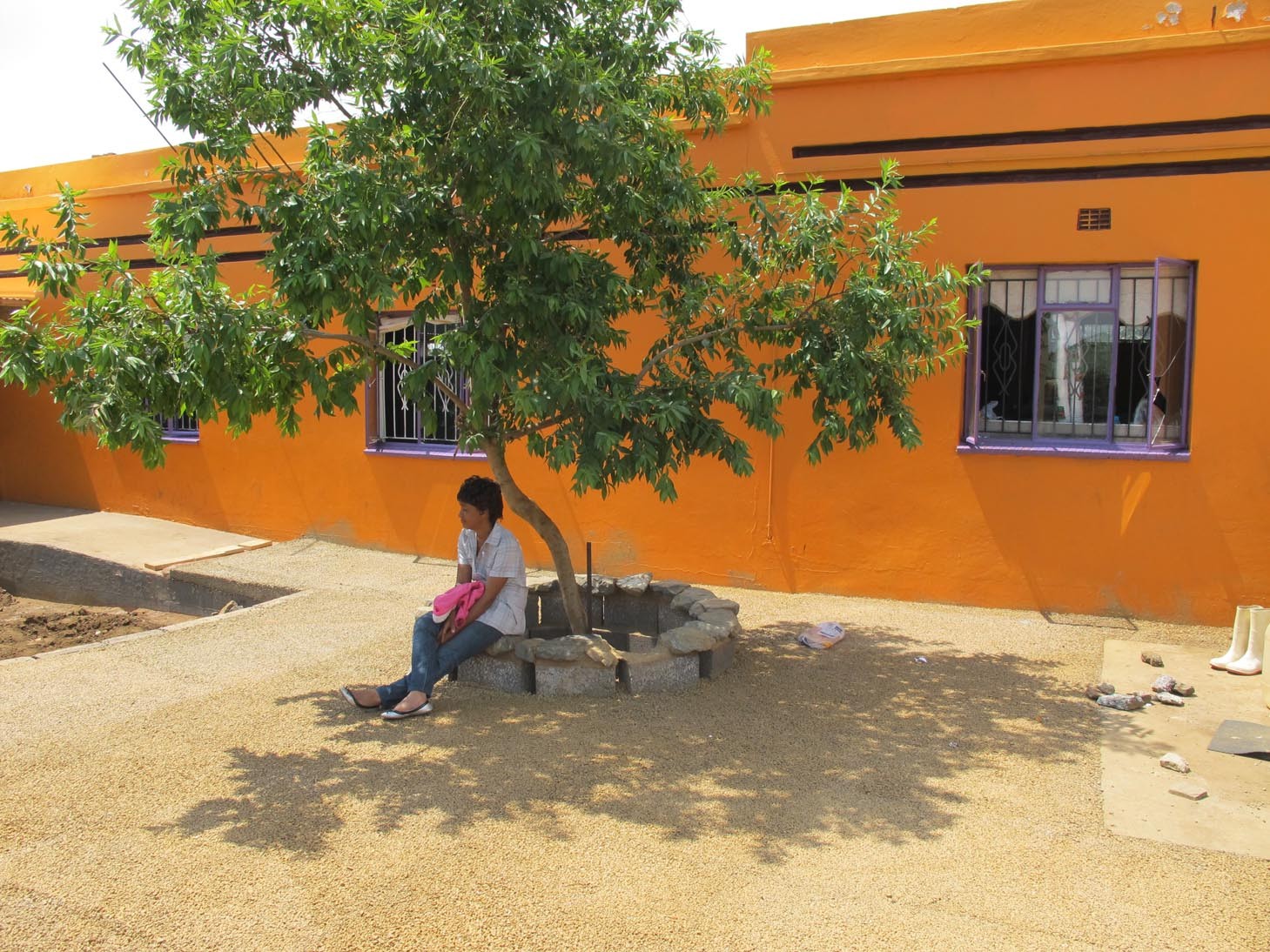 L’arbre-banc dans la cour du centre SKY, chantier Learning From SKY Kliptown Soweto
