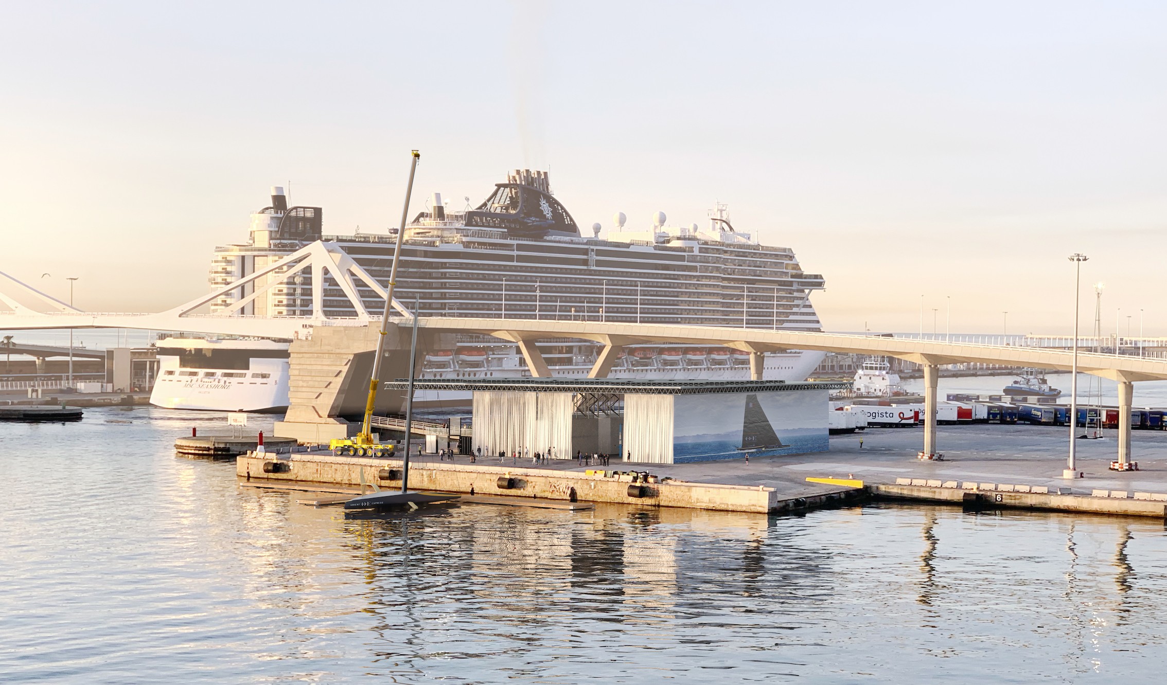 Projet d’installation d’Orient Express Racing Team – le défi français pour la 37e Coupe de l’America – sur le port de Barcelone. L’objectif est de construire une base d’entraînement et de compétition pour une soixantaine de personnes et deux bateaux. Le bâtiment proposé décline confort (fluidité des espaces, bioclimatique), modularité (installation temporaire et base nautique démontable après l’événement), haute technicité et économie de moyens. Il comprend : ateliers, administration, sanitaires, vestiaires, cuisine, espace restauration et événementiel, voilerie, salle de sport, simulateur, salles de réunion, locaux de grande capacité pour la maintenance des bateaux et équipement de levage et manutention.