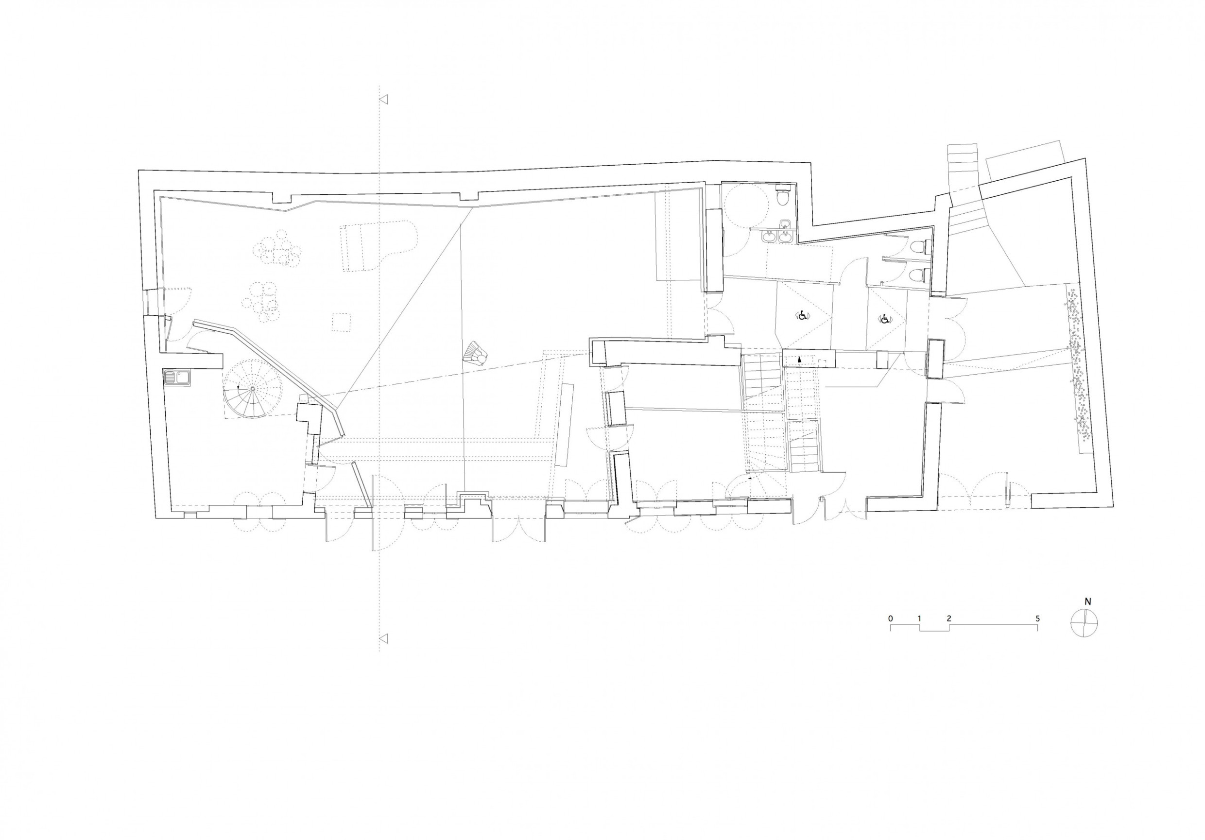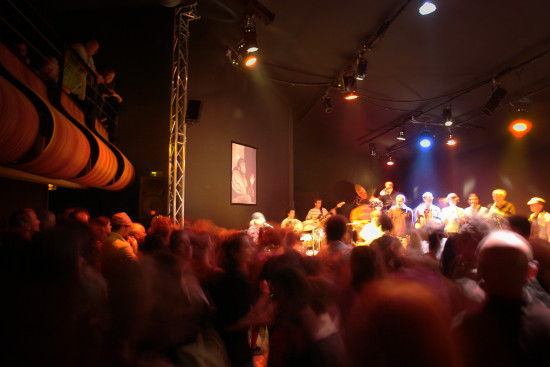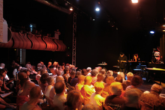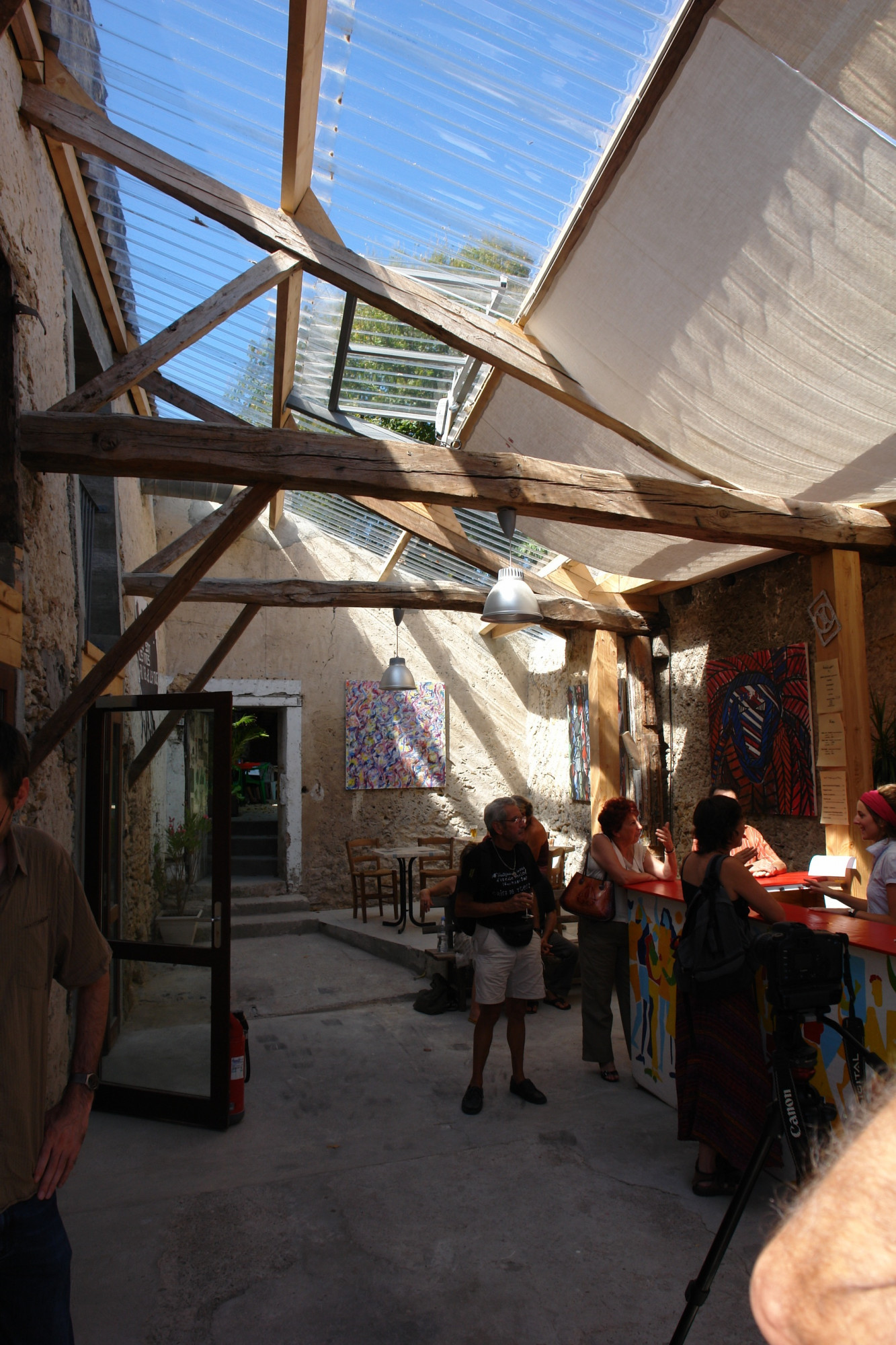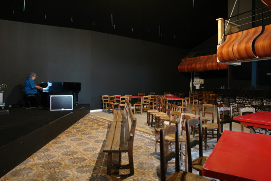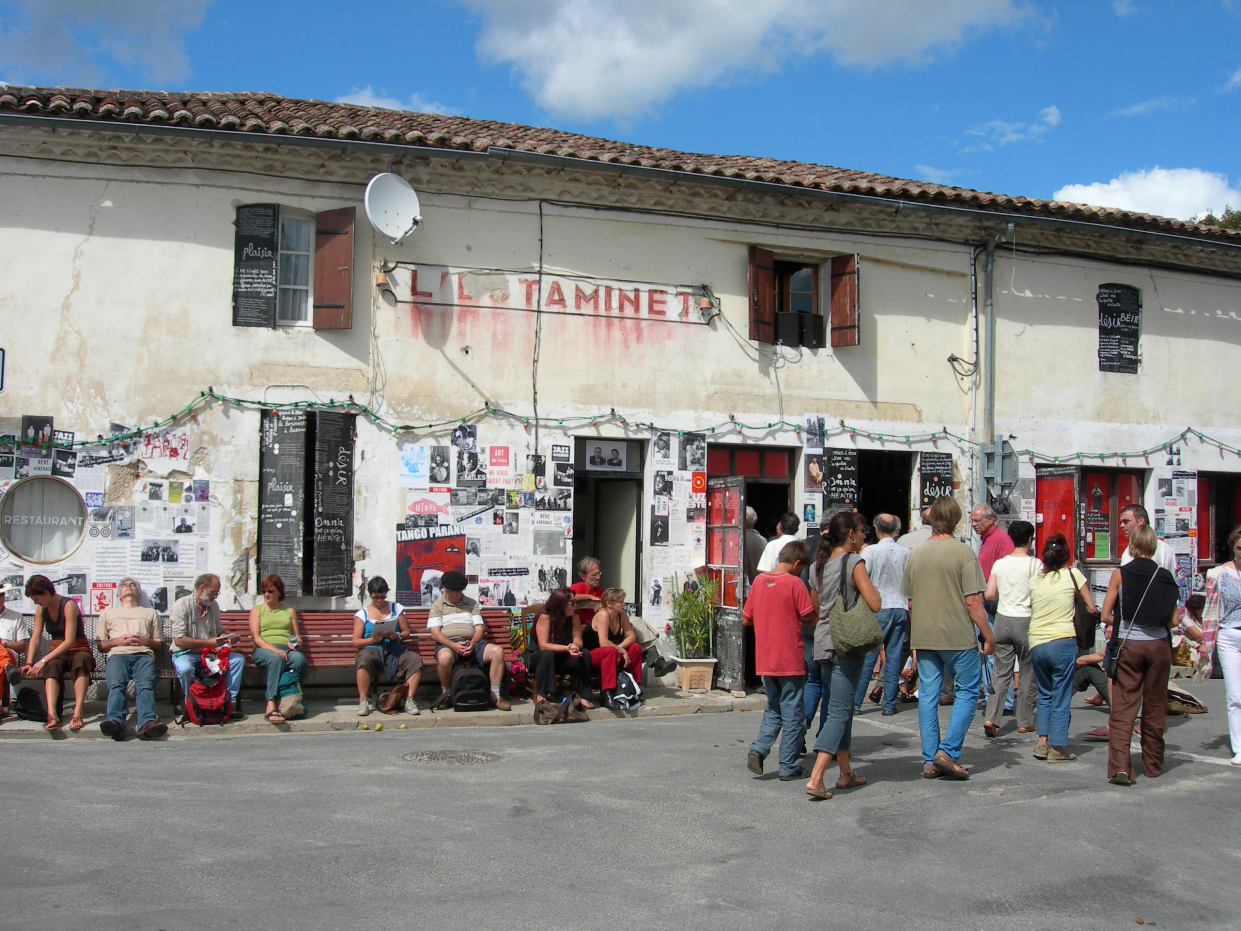 L’Estaminet est un établissement fondé à Uzeste en 1937 par Alban et Marie Lubat. Tour à tour café, restaurant, hôtel, épicerie, cinéma, dancing, il s’est transformé au fil du temps en un lieu emblématique de l’histoire du village et de la vie rurale du Sud Gironde. Devenu dès 1978, sous l’égide du musicien Bernard Lubat, l’épicentre des travaux de la Compagnie Lubat et le lieu fondateur du festival d’Uzeste Musical, il a acquis dès lors une notoriété internationale. La commande était simple et émanait directement de l’artiste : transformer le lieu en « laboratoire de recherche transartistique ». Elle s’est traduite par l’agrandissement du volume de la salle de spectacles, la création de balcons aux formes acoustiques et sensuelles, le déplacement de l’entrée dans un jardin d’hiver et l’accueil des bureaux de la Compagnie Lubat dans la partie anciennement occupée par un logement. Dans un budget extrêmement réduit pour ce type d’équipement, la mise en valeur des éléments témoignant de l’activité passée du lieu (carrelage, façade, anciens murs) fut tout particulièrement soignée, ainsi que la réponse apportée à des normes drastiques en matière d’acoustique ou d’accueil du public.