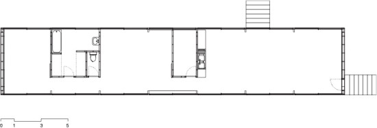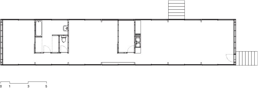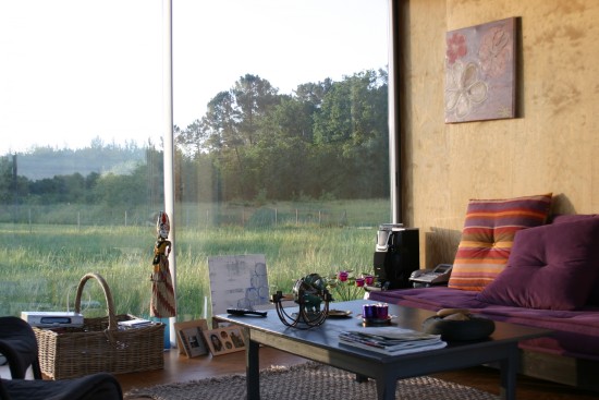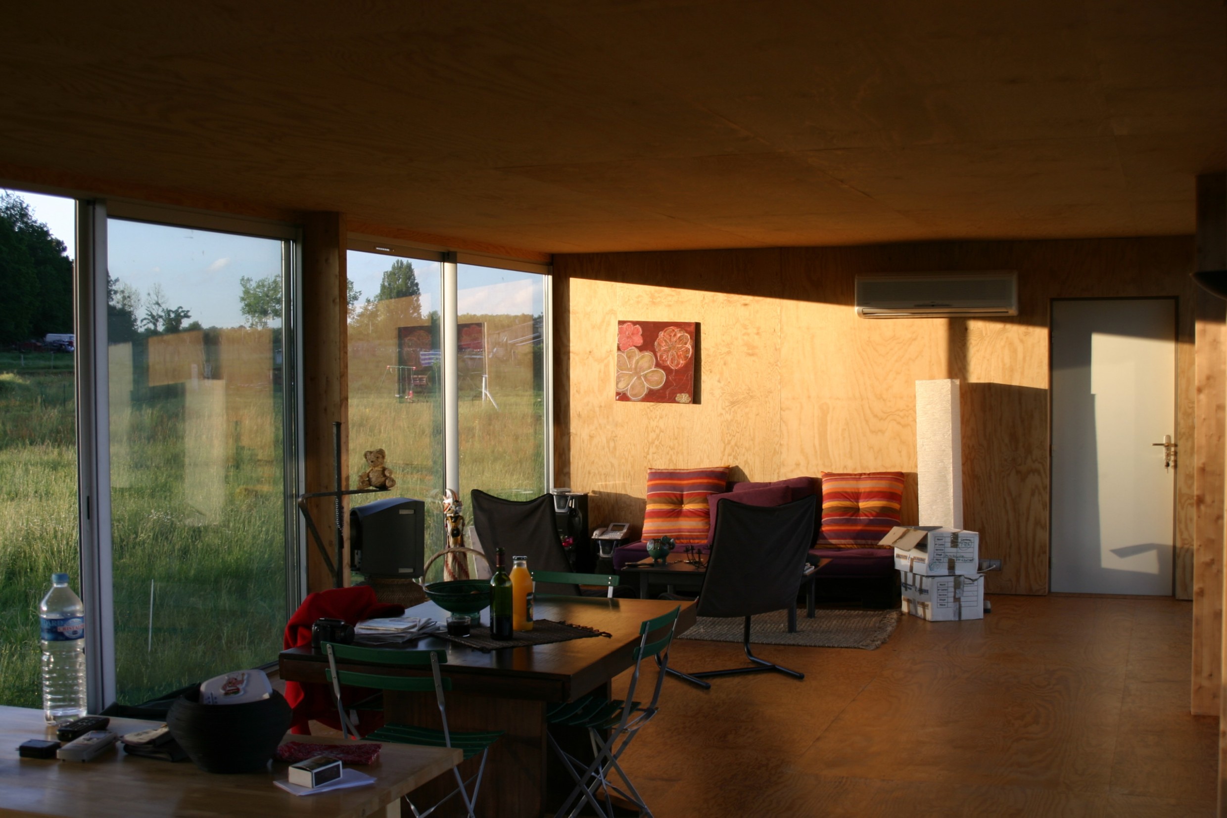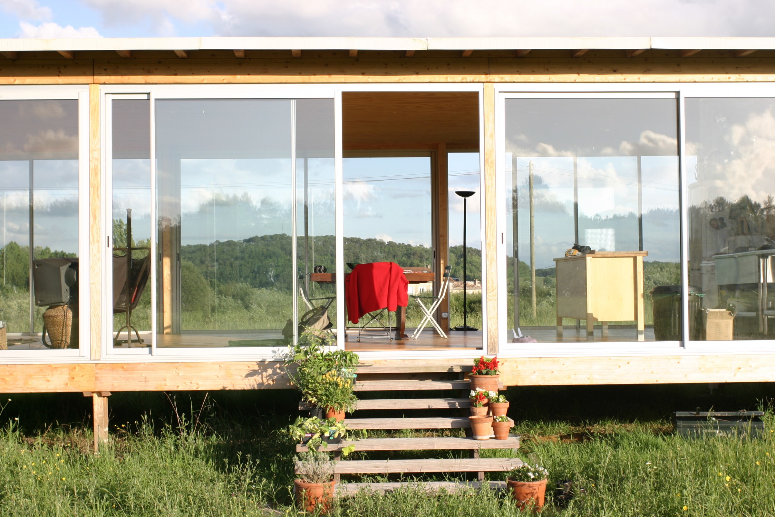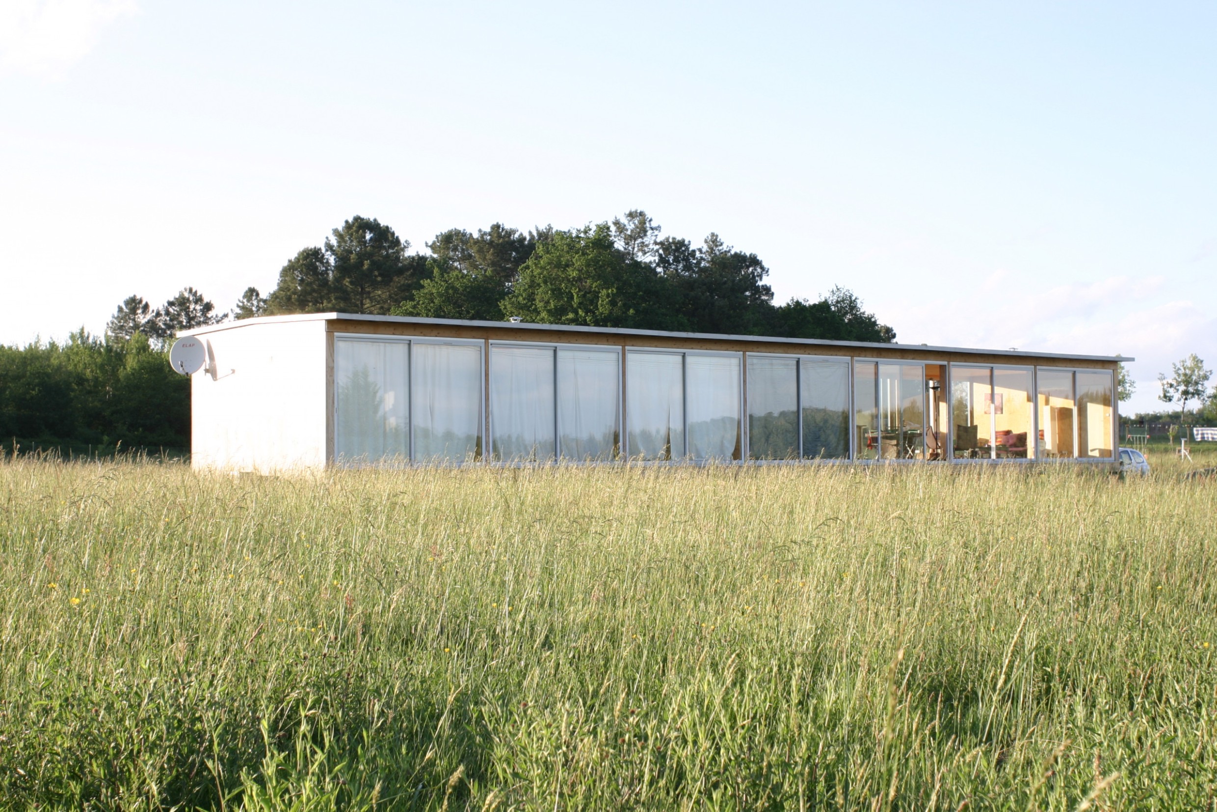 Le village de Montpeyroux offre un paysage légèrement vallonné avec des vues lointaines. Compte tenu de la pente du terrain et des contraintes budgétaires, la maison est surélevée par rapport au sol naturel. Ce projet très économique propose un principe constructif rationnel avec la structure, les murs et le sol en bois, et les façades totalement vitrées. Un rideau thermique permet d’occulter les façades et de contrôler la température. Implantée dans l’axe des maisons avoisinantes, la maison n’a aucun vis-à-vis. Sa forme allongée offre des cadrages panoramiques sur les coteaux lointains. Pour habiter cette campagne dans sa totalité, un jardin vient agrémenter la parcelle de quatre mille mètres carrés, avec un champ de fleurs composé d’une centaine d’espèces sauvages.