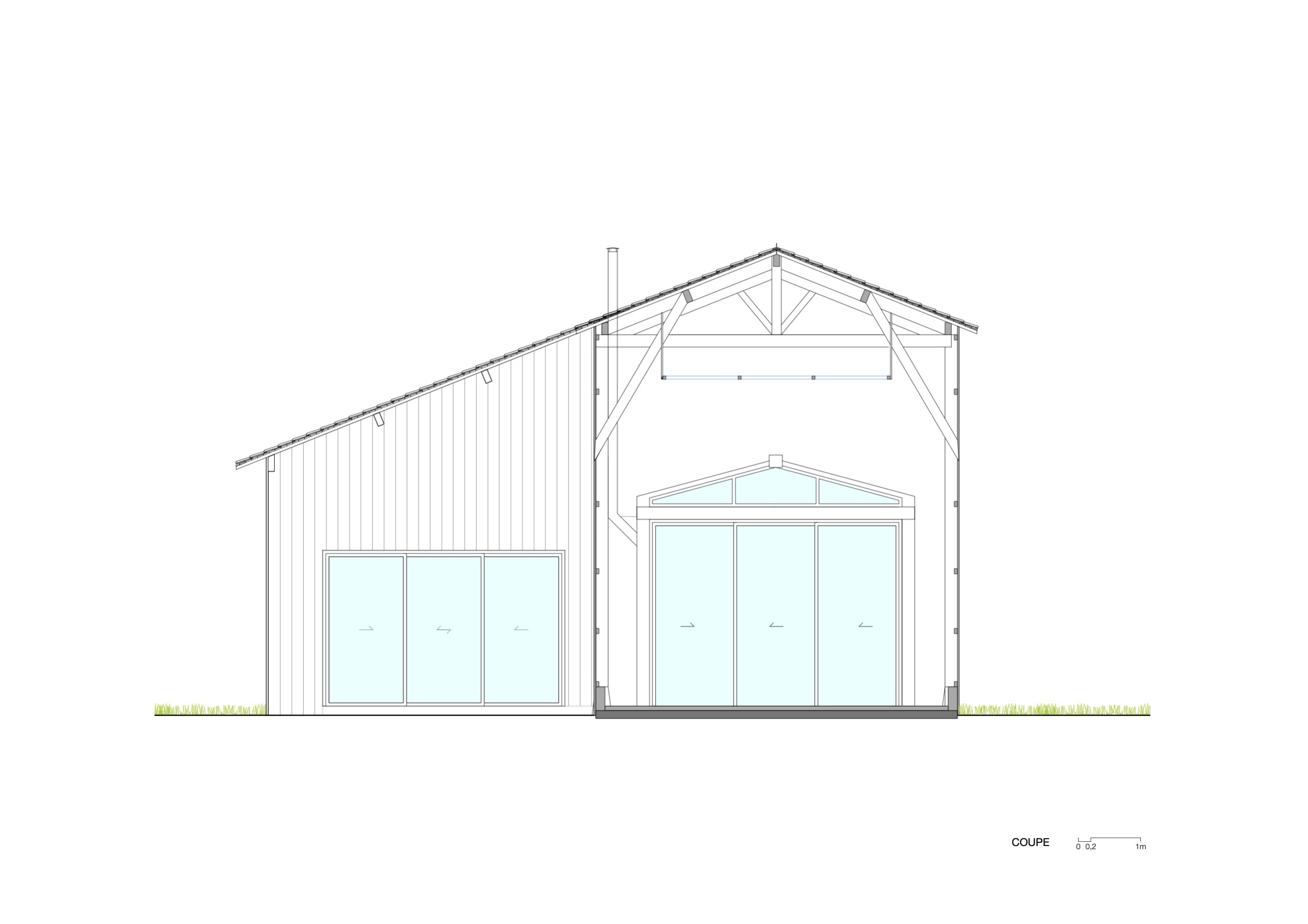 Quelques principes de base : le juste nécessaire avec une grande verrière installée dans la nef du séchoir ; le moins de matière pour avoir la vue la plus ouverte, garder la hauteur, faciliter le mouvement et faire des économies.