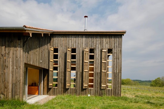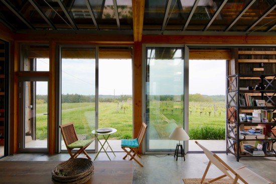 La maison s’ajuste en fonction des vents et de la lumière, agréable en toutes saisons, au milieu du ciel et des vignes du Lot-et-Garonne.