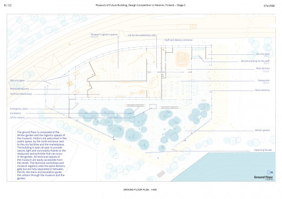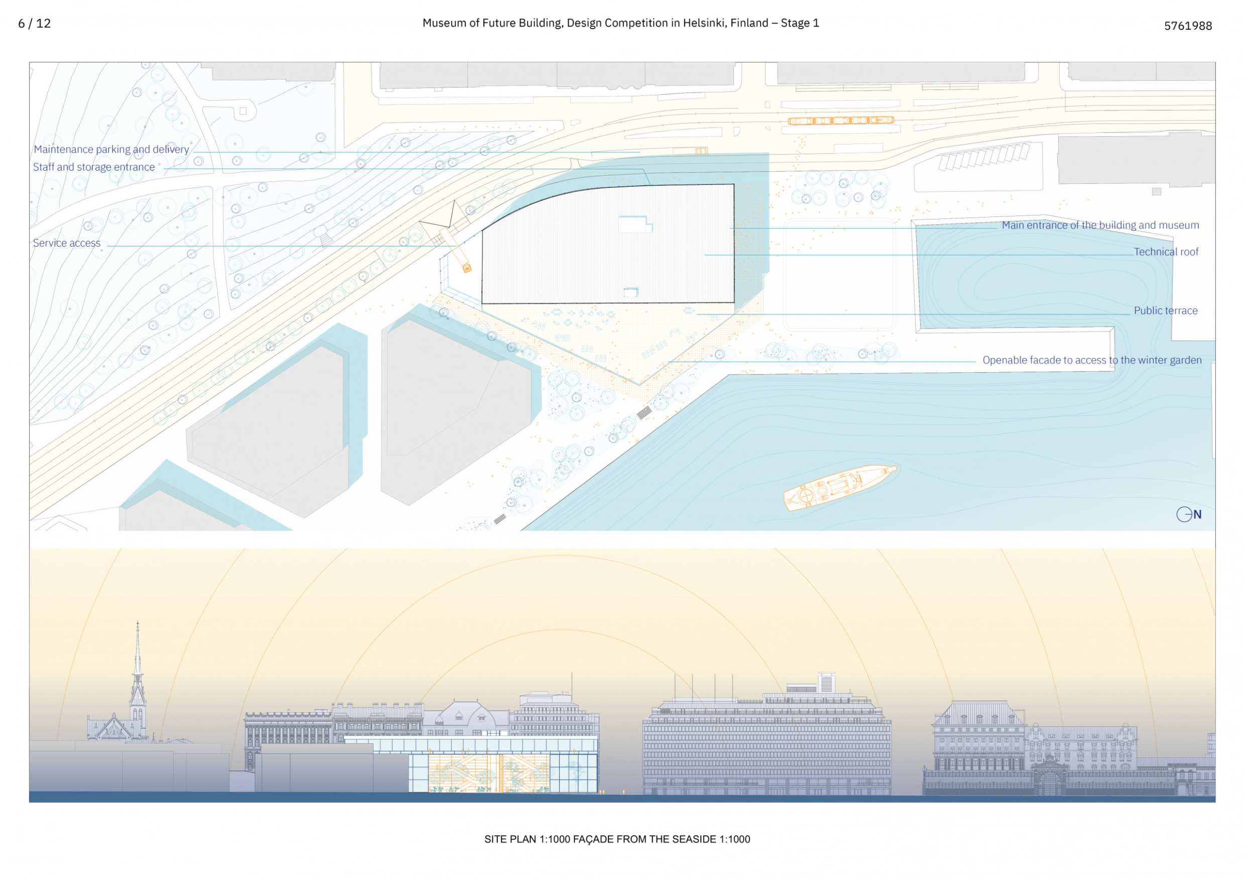 Il est ceinturé d’un mur à double peau qui garantit sa performance thermique, climatisé et utilisé comme espace de stockage et d’exposition pour une partie des collections du musée. En jouant avec les objets (œuvres de la collection et/ou fac-similés) et avec la lumière - transparence, opacité, éclairage, jour/nuit - il est possible de faire en sorte que les objets soient préservés (le jour) aussi bien qu’ils soient visibles (la nuit) depuis l’intérieur du musée ou depuis la ville (façade sur rue…). On entre dans le musée par un vaste jardin planté dans la courbe du soleil, dans une serre qui s’ouvre largement sur les quais et la mer en été, et se ferme et s’illumine du lux dont le corps a besoin quand la nuit tombe.
