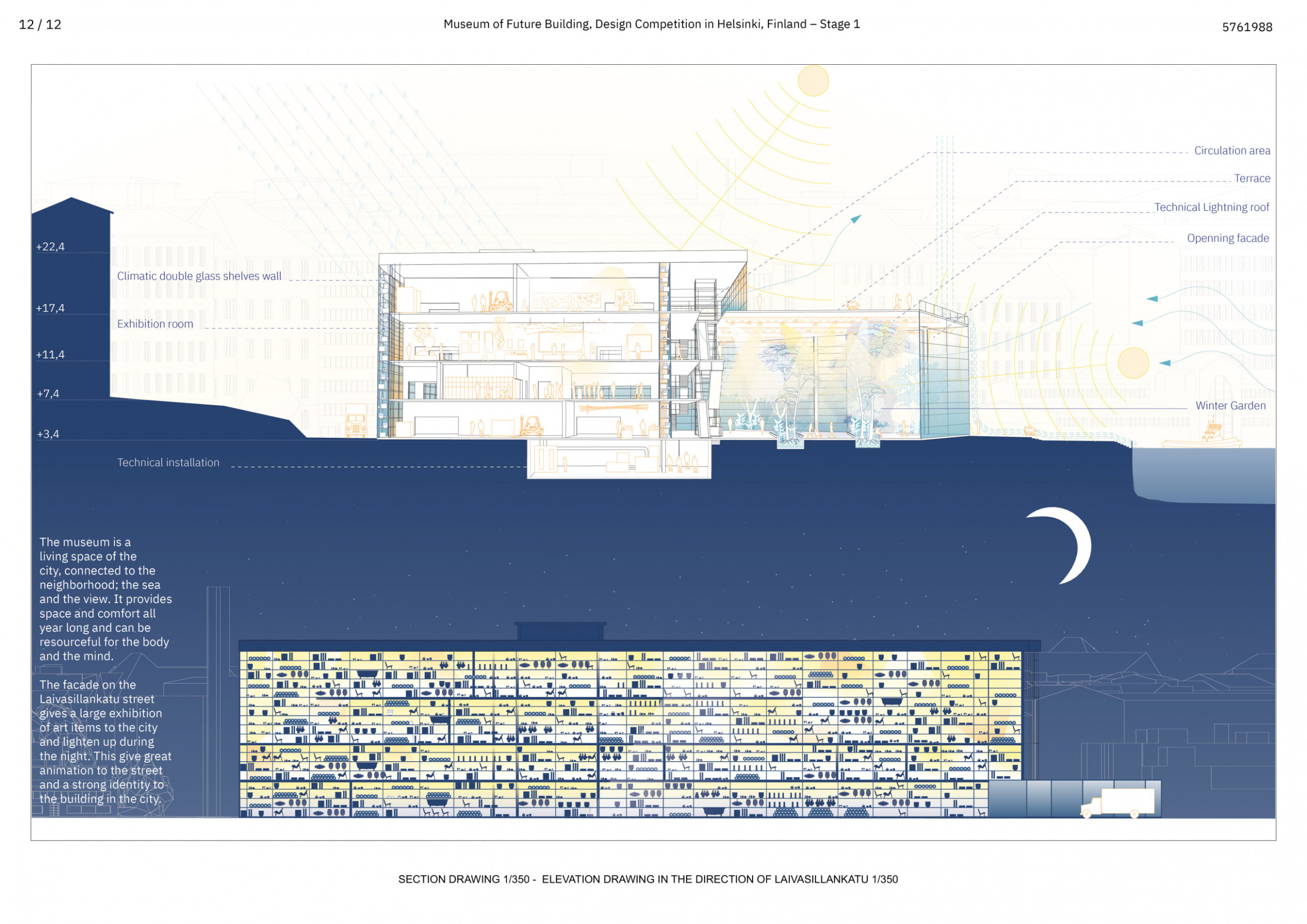En montrant la richesse de ses réserves, le bâtiment invite le public à entrer dans le musée, pour mieux comprendre l’architecture et le design. En s’illuminant la nuit, en apportant la lumière dont le corps a besoin, le musée devient à la fois un phare dans la ville et un centre de ressources où la culture du corps rencontre celle de l’esprit.