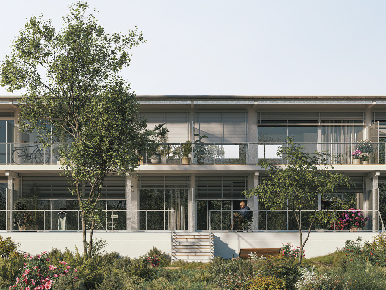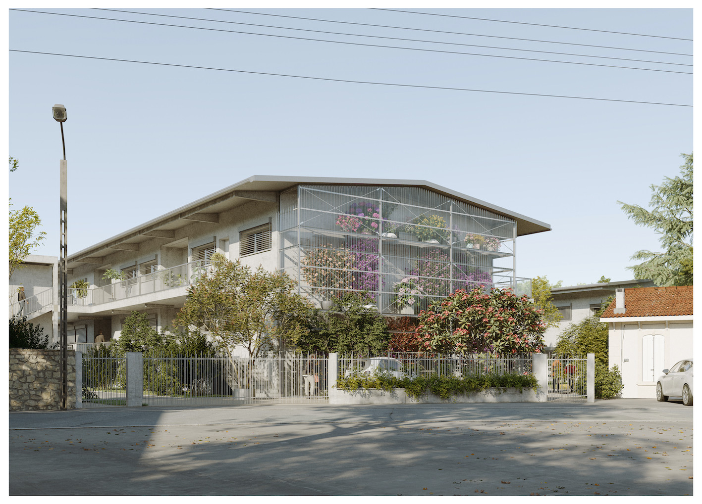 Résidence à Caudéran (33) Année 2024 Localisation Bordeaux Caudéran (33) Programme Résidence 20 logements dont 4 sociaux, parking souterrain, jardin Maître d'ouvrage Icade Statut PC Bureaux d'études Astrée (structure), Vivien (fluides, élec), Vpeas (économie), Hermel & Trouillot (paysage) Surface 1 800 m2 + 800 m2 parking souterrain Coût 4 000 000 € HT Programme de logements au cœur d’un quartier résidentiel de Bordeaux, sur l’emplacement d’une ancienne pépinière. images : Jeudi Wang